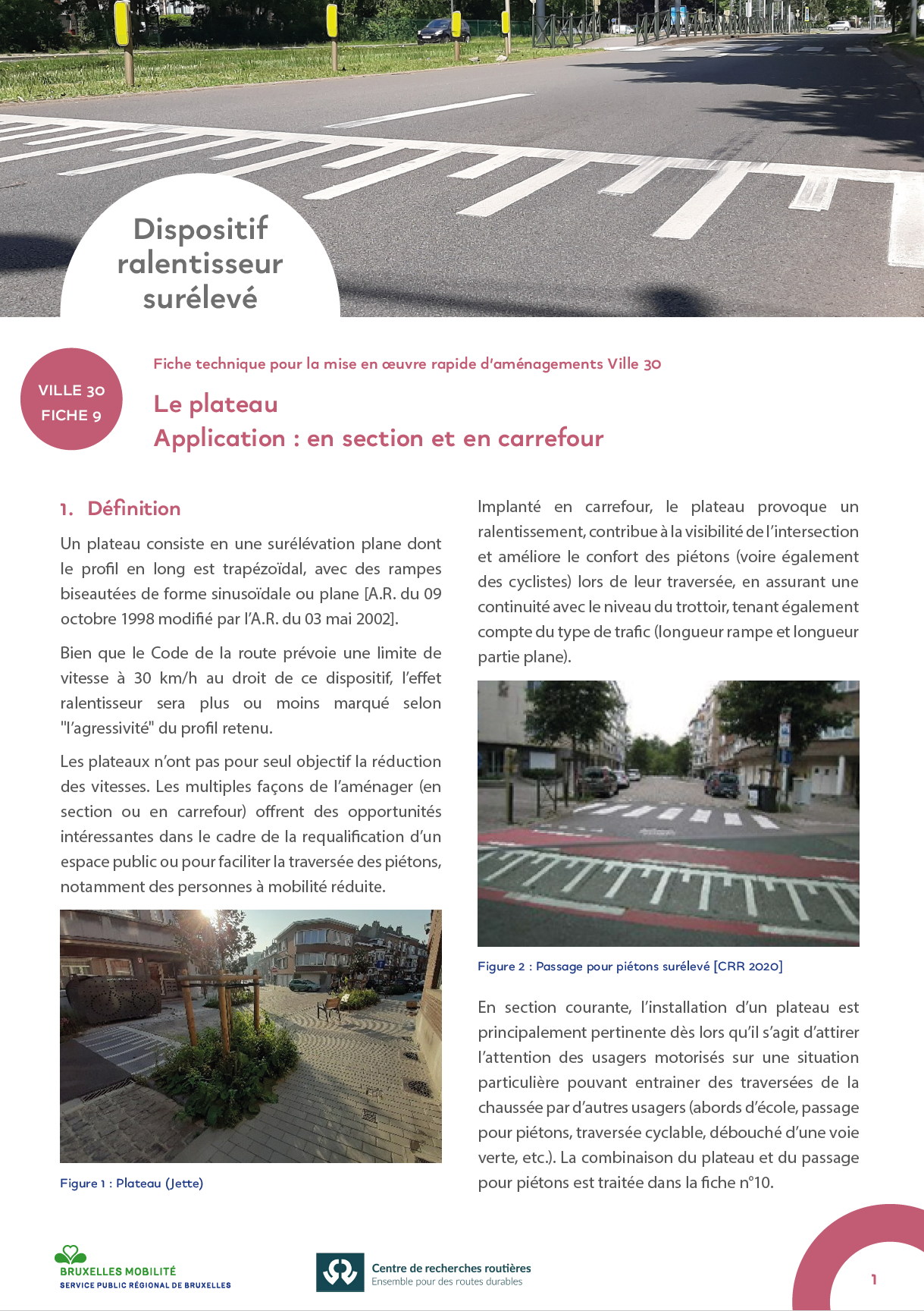 Guide pratique - Installation de dispositifs ralentisseurs surélevés en Région de Bruxelles-Capitale : Plateaux, ralentisseurs et coussins
